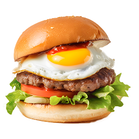 2 Steaks 180g, cheddar, boursin, oeuf, bacon, crudités.