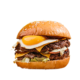 2 Steaks 180g, cheddar, boursin, oeuf, bacon, crudités.